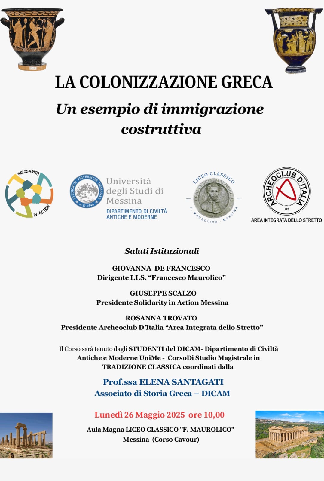 Maggio 26 @ 10:00 La Colonizzazione Greca. Un Esempio di Immigrazione Costruttiva Archeoclub Sede Area Integrata dello Stretto
