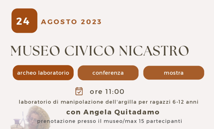 24 Agosto 2023 @ 11:00 Archeo Laboratorio, Conferenza e Mostra nel Museo Civico di Nicastro Archeoclub Sede di Bovino