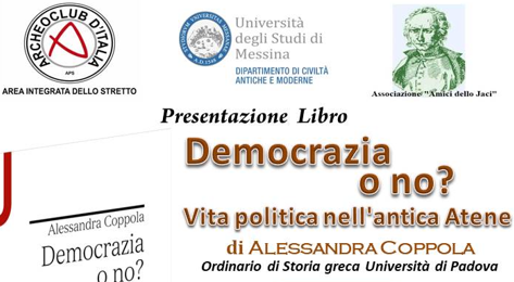 Ottobre 23 @ 16:30 Presentazione del Libro “Democrazia o No? Vita Politica nell’Antica Atene” di A. Coppola Archeoclub Sede Area Integrata dello Stretto