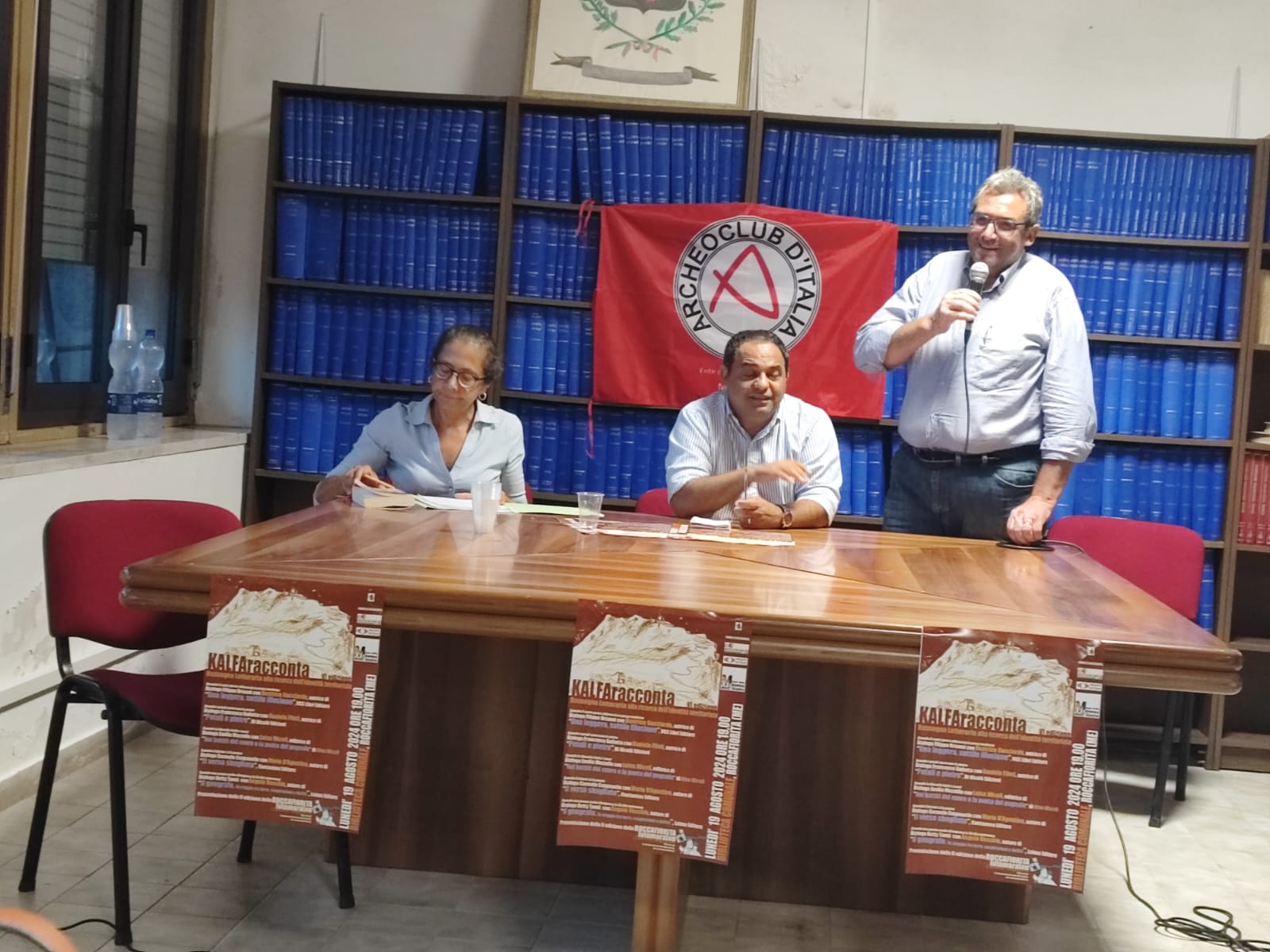 Penna meno tecnologica ma altrettanto efficace quella di Al Idrisi, il geografo arabo del re normanno Ruggero II, di cui Angelo Vecchio, per Leima editore, ne ha ricostruito il viaggio e le vicende siciliane in un libro (“Il geografo. In viaggio tra terre, cospirazioni e delitti”), commentato insieme a Ketty Tamà, la quale ha auspicato una battaglia della Sicilia per far tornare a Palermo il mantello dell’incoronazione di Ruggero II, oggi custodito in un museo di Vienna e realizzato nel “Tiraz” di Palermo, il laboratorio d’arte annesso al Palazzo Reale al tempo dei Normanni. Un messaggio subito accolto anche da Angela Roberto, presidente di Archeoclub Agrigento e luoghi di Empedocle, la quale nel proporre un’iniziativa comune di Archeoclub su questo tema, ha elogiato la “vivacità della biblioteca e della comunità di Roccafiorita”. È stata l’occasione anche per presentare la partecipazione di Archeoclub d’Italia della Borsa Mediterranea del Turismo Archeologico che avrà una sessione ad Agrigento, Capitale della Cultura 2025, dal 27 al 29 settembre e con una giornata curata da Archeoclub, con la presenza dei presidenti delle sedi siciliane, il presidente nazionale, Rosario Santanastasio e la vice presidente Flora Rizzo, oltre che del consigliere nazionale Francesco Finocchiaro.